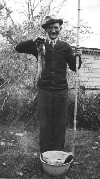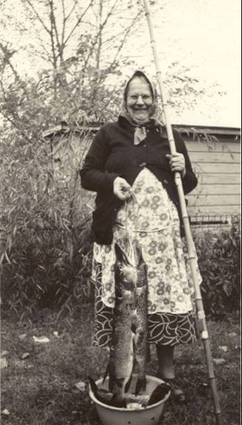 Enclosed is a copy of a photograph of my Grandma Breza. Check the fish, the pan, the pole, the shed, and the willow tree. They are the same. Joe and Ella had their picture taken in Winona, MN. Did you know that? Grandma Breza took care of Ella and raised her as her own child after Ella's mother died. I even have a vague memory of the photo taking session. To have each pose with someone else's fish was the reason for those big smiles on all those faces. We were all laughing, even though I really didn't know those two people - Joe and Ella. (Letter from Father Paul Breza to Dianne Morley, 1997).